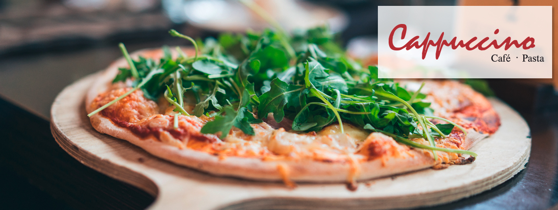 | Pizza "Cappuccino Spezial“ mit Thunfisch, Schinken und Zwiebeln |