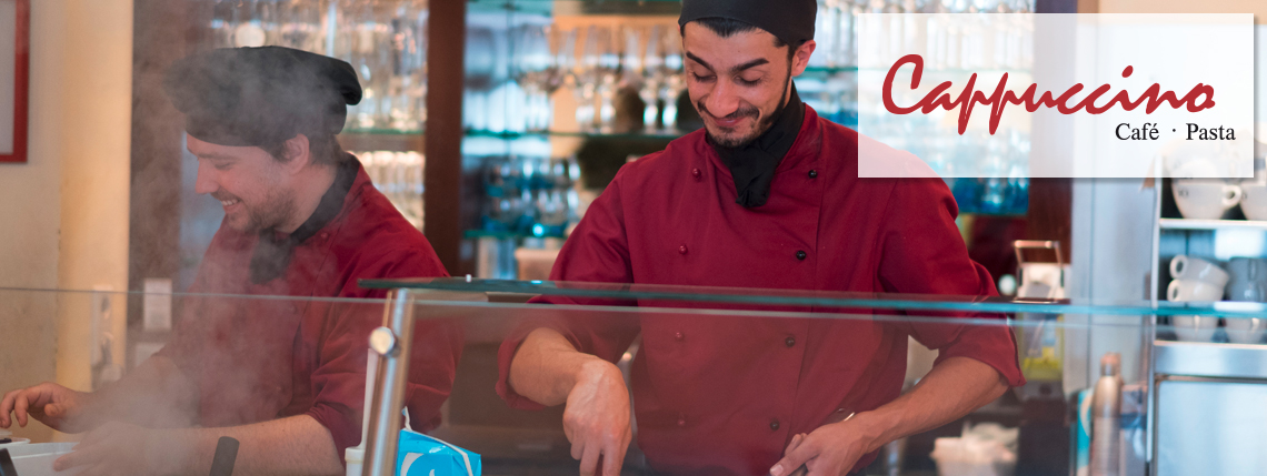 | "Pasta duo“ Gefüllte Raviolini auf einer Gorgonzolasauce mit Walnüssen und Tagliatelle auf Tomatensauce, Parmesan |