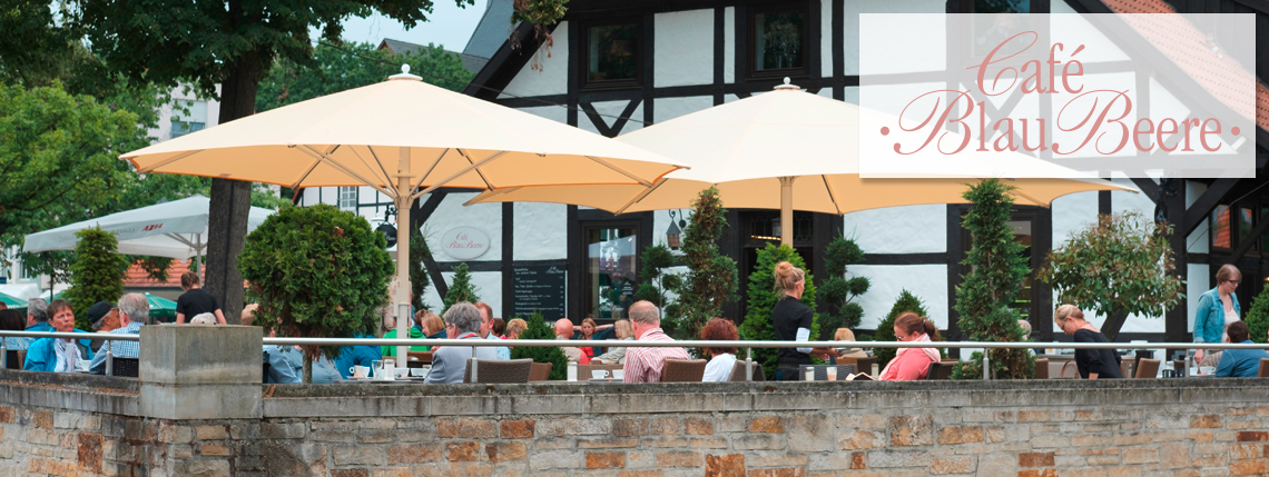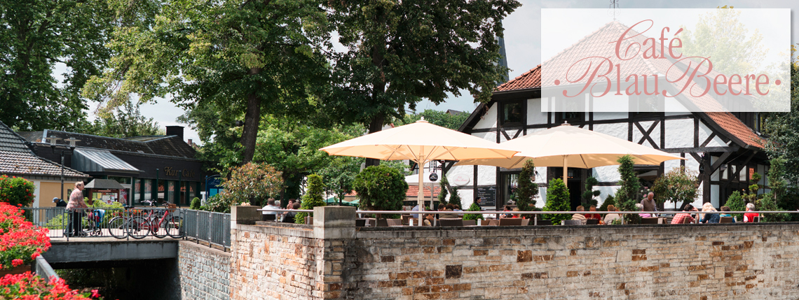 Unser Café Blaubeere liegt inmitten der Fußgängerzone von Bad Sassendorf, umgeben von altem Baumbestand.